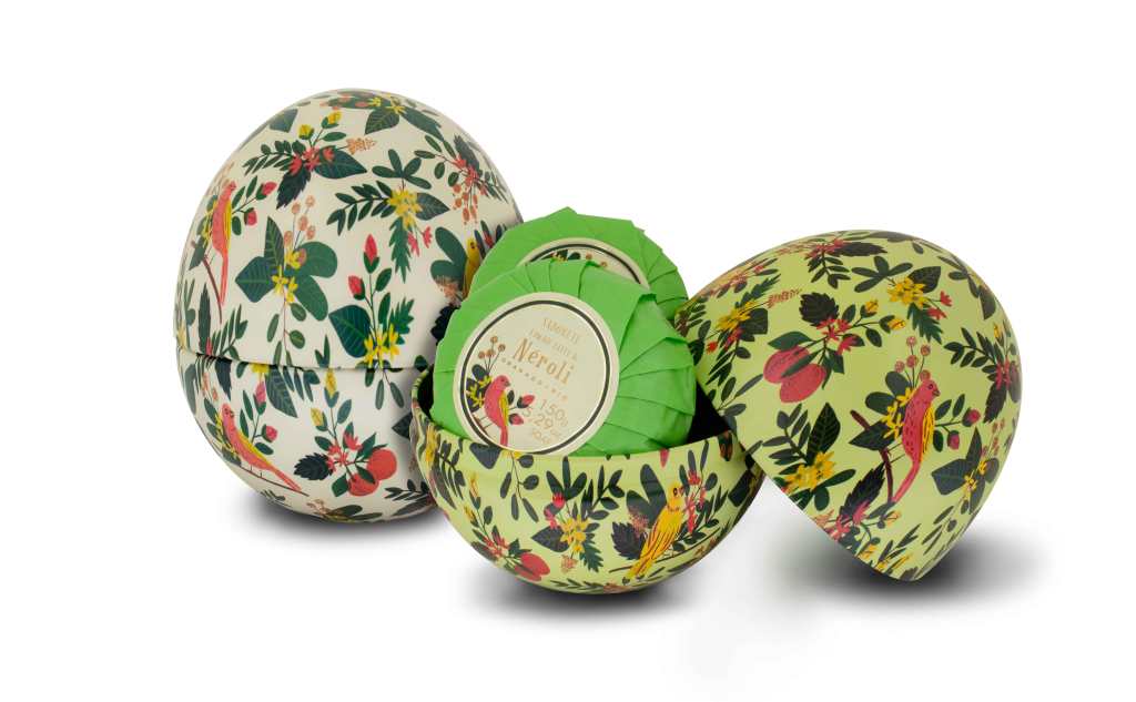 Criação de estampa com tema Páscoa para a Granado. Pinturas à mão com tinta guache serviram de base para criação de padrão aplicado em latas, fibralatas e rótulos.
